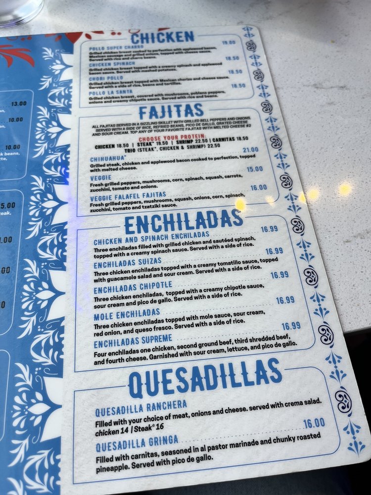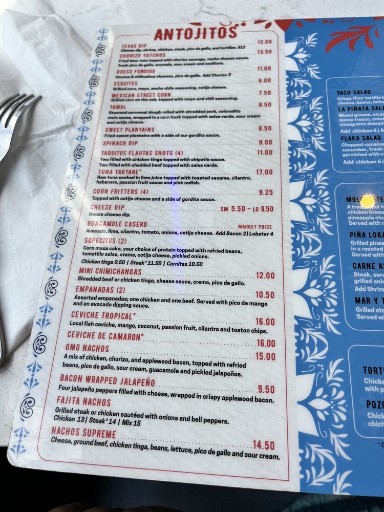 Corn masa cakes, your choice of protein topped with refried beans, tomatillo salsa, crema, cotija cheese, and pickled onions. consuming raw or undercooked meats, poultry, seafood, shellfish, or eggs may increase your risk of foodborne illness, especially if you have certain medical conditions.